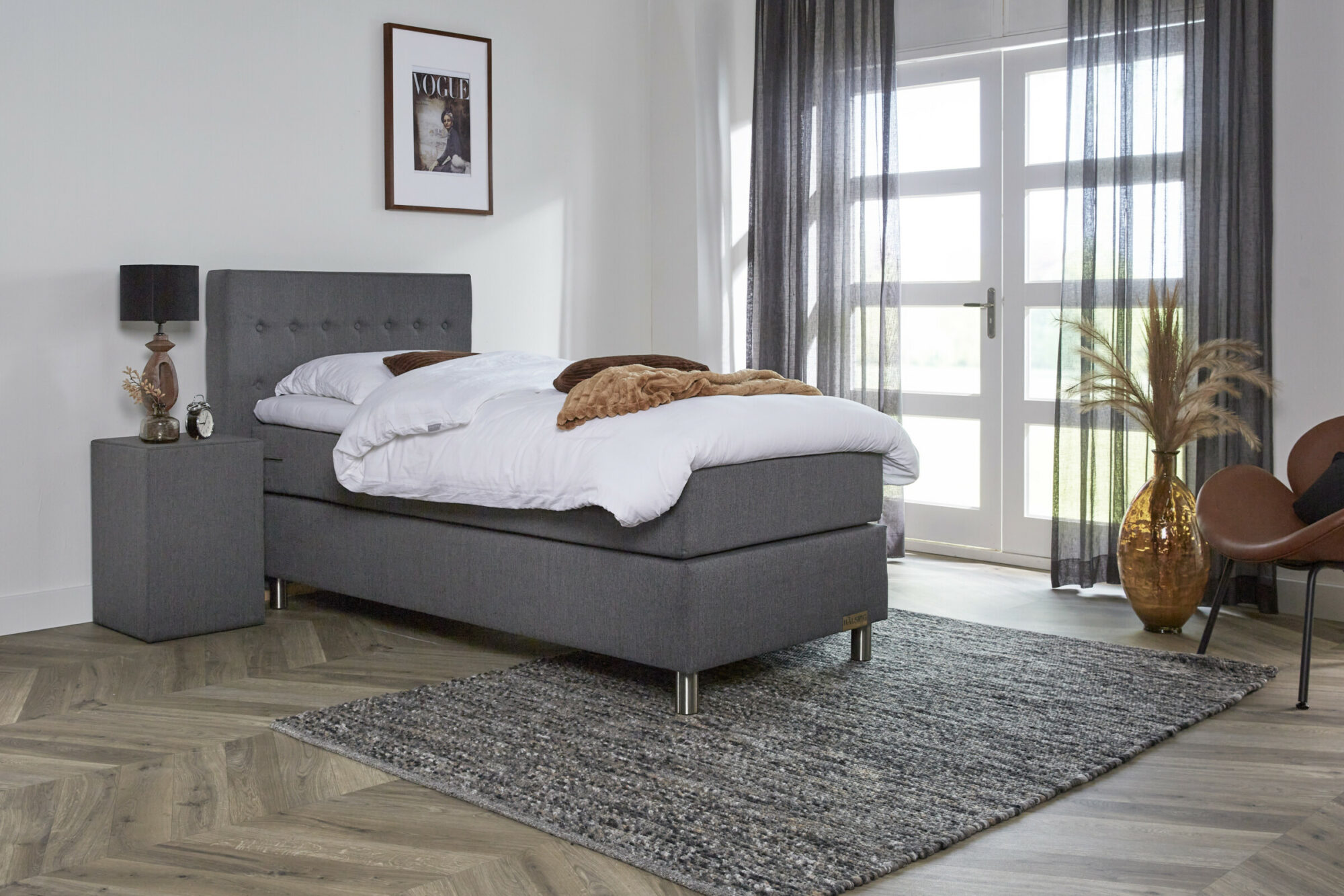 De boxspring wordt bij bezorging netjes thuisbezorgd op de begane grond. Bij montage monteren wij de boxspring op de gewenste plek. Hierna nemen wij alle verpakking materialen weer mee terug, zodat alles netjes achtergelaten wordt. De boxspring zit netjes verpakt in karton en plastic om eventuele schade te voorkomen.